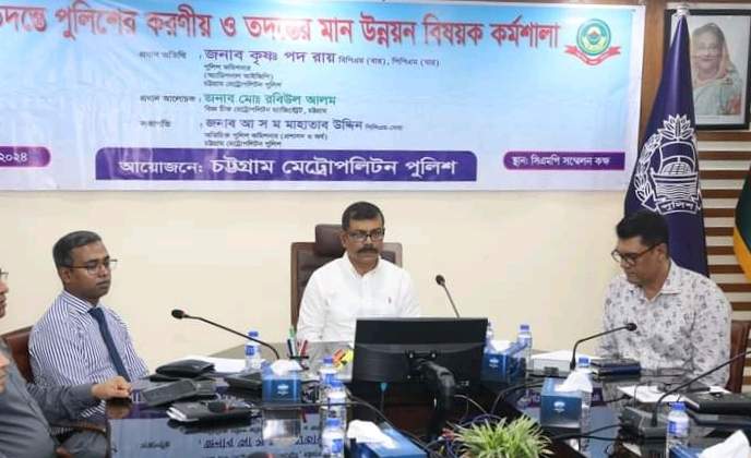১ জুন ২০২৪ খ্রি. চট্টগ্রাম মহানগরীর দামপাড়া পুলিশ লাইন্সস্থ সিএমপির সম্মেলন কক্ষে তদন্তে পুলিশের করণীয় ও তদন্তের মান উন্নয়ন বিষয়ক কর্মশালা অনুষ্ঠিত হয়।