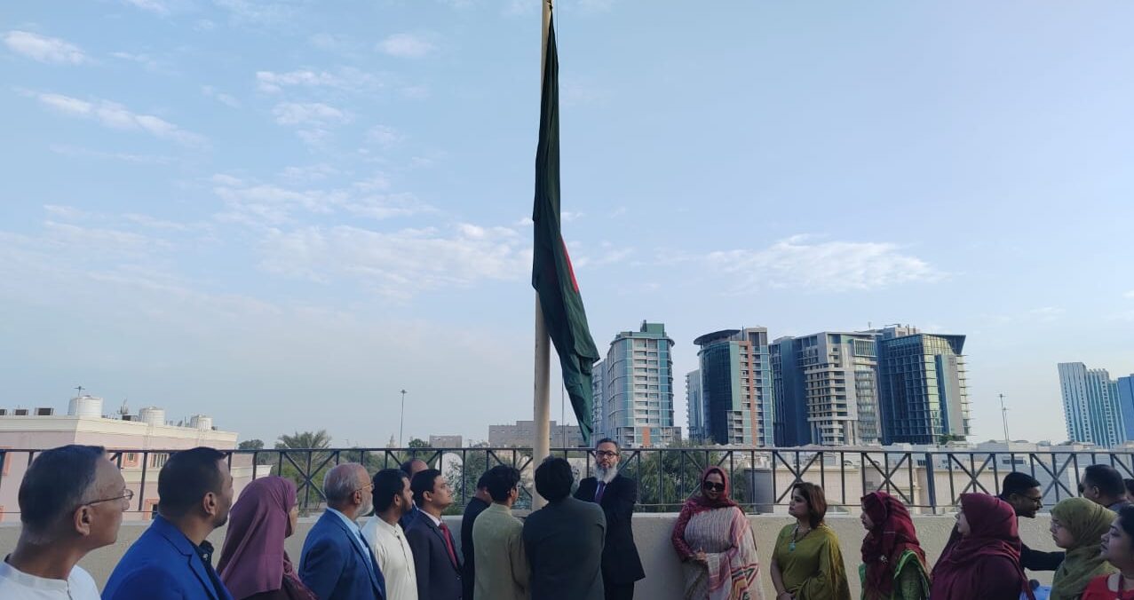 এবং দুবাই কনসুলেটে পতাকা উত্তোলন করেন কনস্যাল জেনারেল মোহাম্মদ রাশেদুজ্জামান।