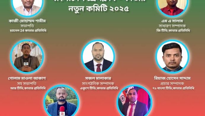 বাংলাদেশ প্রেস ক্লাব কাতারের ২০২৫-২৬ মেয়াদের নবনির্বাচিত কমিটি ঘোষণা করা হয়েছে। স্থানীয় সময় শনিবার (১১ জানুয়ারি) রাতে কাতারের রাজধানী দোহা নিউ জামান রেস্টুরেন্টে নতুন কমিটি ঘোষণা করেন দায়িত্বপ্রাপ্ত নির্বাচন কমিশনার