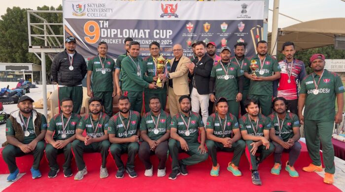 সংযুক্ত আরব আমিরাতের শারজাহর স্কাইলাইন বিশ্ববিদ্যালয়ের উদ্যোগে আয়োজিত ডিপ্লোম্যাট কাপ ক্রিকেট চ্যাম্পিয়নশিপের নবম আসরে বাংলাদেশ কনস্যুলেট জেনারেল, দুবাই রানার্সআপ হওয়ার গৌরব অর্জন করেছে। রোববার (৯ ফেব্রুয়ারি) বিকেল ৩টায় বিশ্ববিদ্যালয়ে মাঠে read more